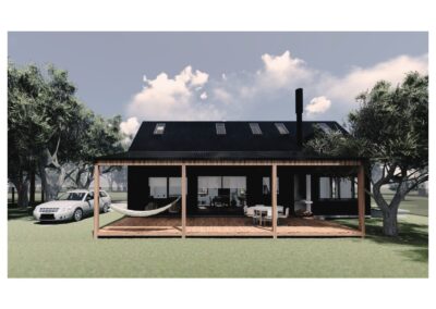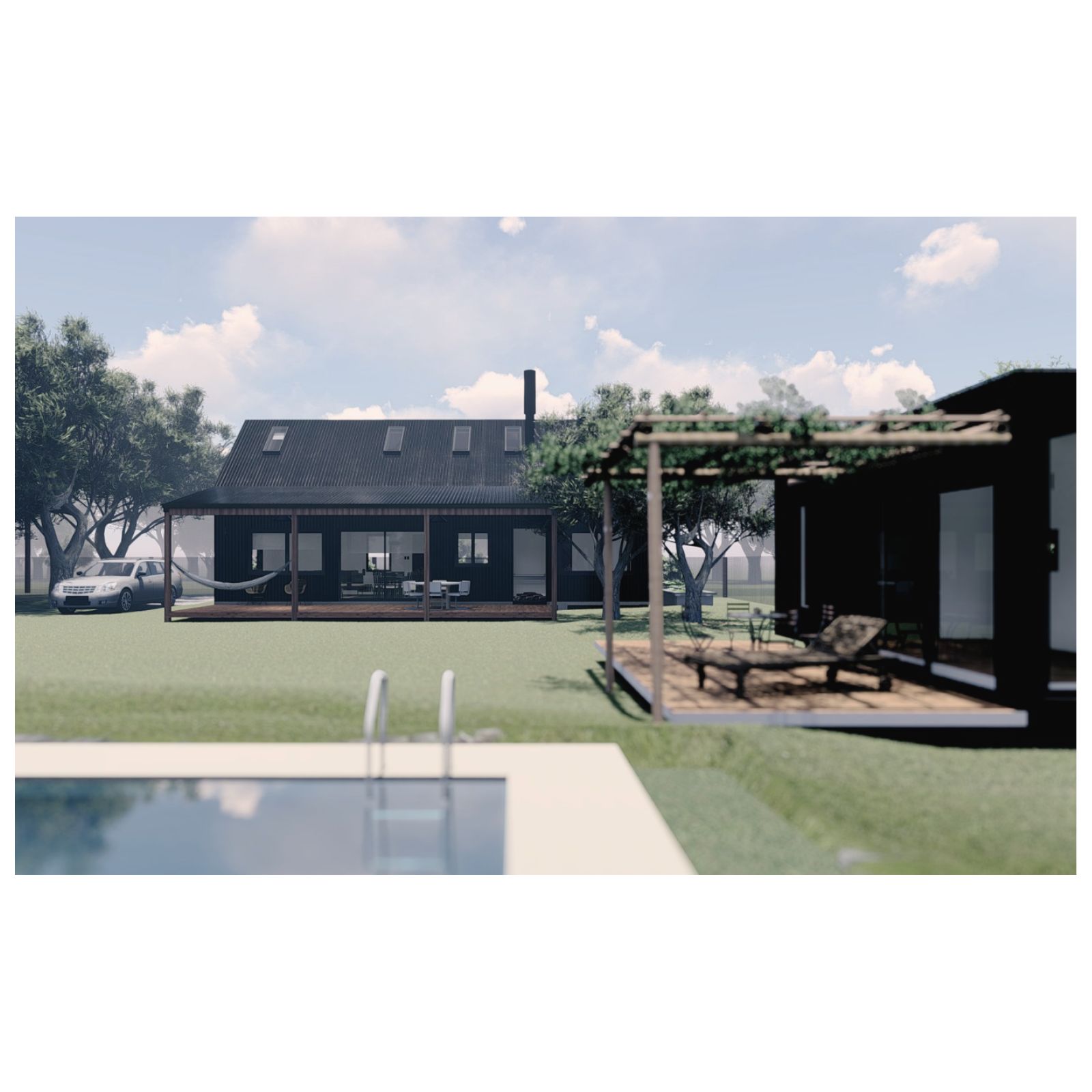 Llegaron con la idea de pensar una casa de fin de semana o vacaciones, con la proyección de vivir a futuro. Tenían en claro la estética deseada y los espacios necesarios para ellos y para recibir visitas, pero tenían algunas dudas: ¿Cómo se integraría la nueva casa con los contenedores existentes? ¿Cuál es el mejor lugar para ubicarla con tantas cosas? ¿Cómo aprovechar al máximo el terreno?