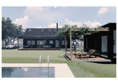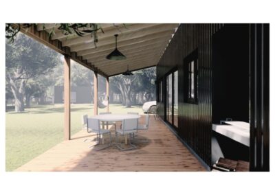 Uno de los contenedores lo dejamos donde estaba, como casa de huéspedes un poco más privada y alejada de la casa principal, y el otro lo reubicamos y remodelamos como quincho cerca de la pileta.